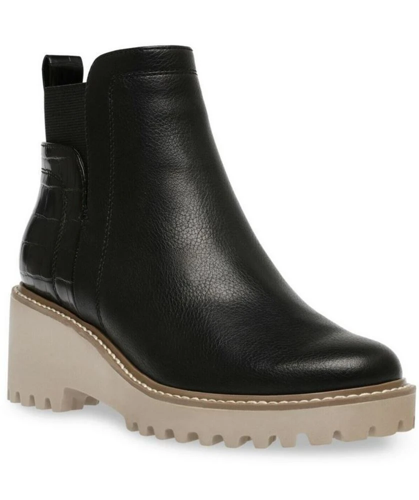 Your new favorite winter boot is here. Dv by Dolce Vita introduces the Rielle. A super-sleek bootie featuring a chunky lug sole and man-mad fabric/synthetic upper. 100% waterproof and a 2.3 inch heel height. Wear them on a cool fall day or pair them with a dress.