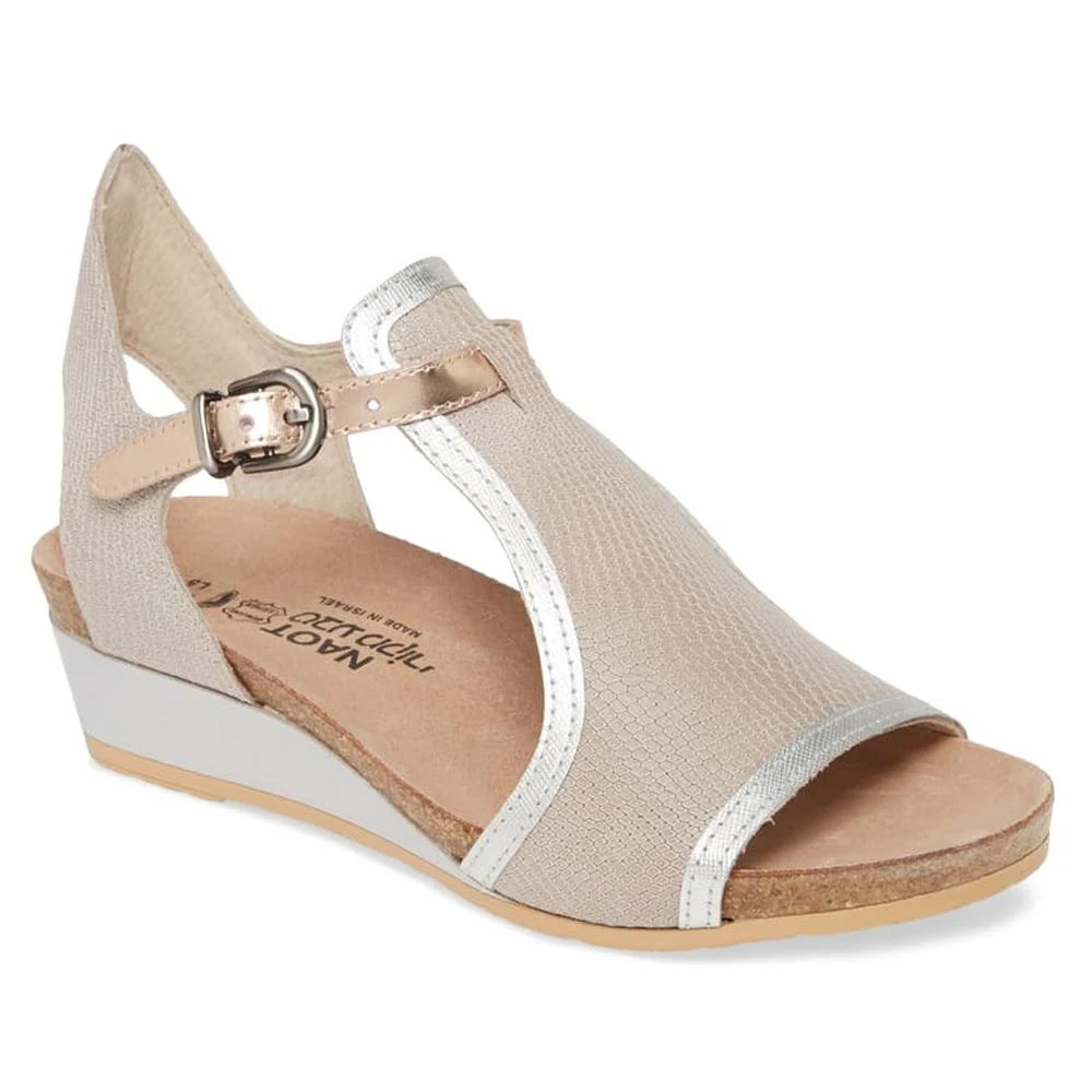 A perfect transitional piece from Summer to Fall, the Fiona sandal by NAOT is great to wear year-round. With a shock absorbent footbed and arch support, this wedge was made for walking. A buckle strap around the ankle allows for a customized fit.