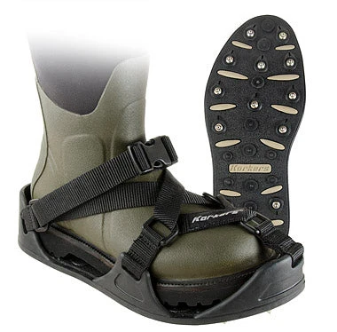 A versatile cleated overshoe product that provides sure-footed traction on mossy rock, ice, and slick terrain.