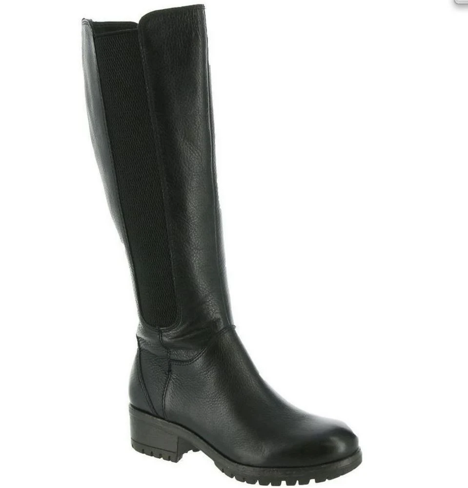 A knee-high boot that pairs perfectly with a long skirt for the fall/winter season. Features a leather upper with goring panels and a zipper closure for easy on and off. A lightly cushioned footbed will keep your feet comfy all day long. Lug sole insole and 1-1/2` heel.