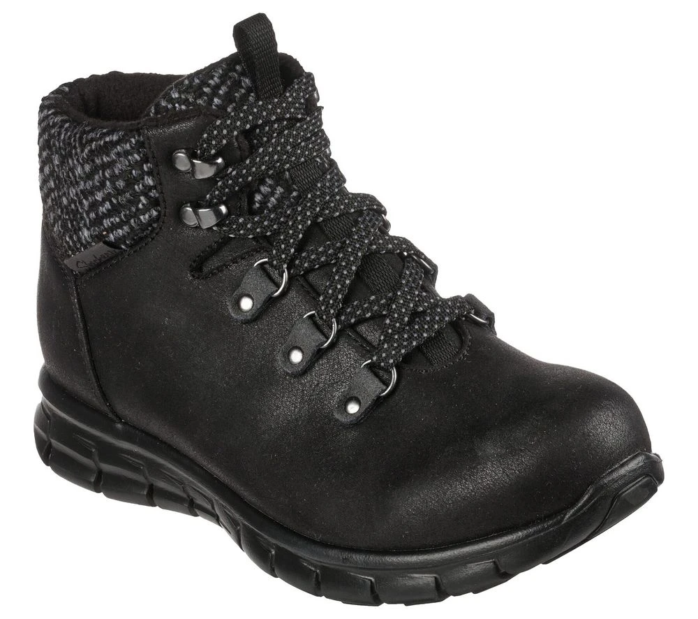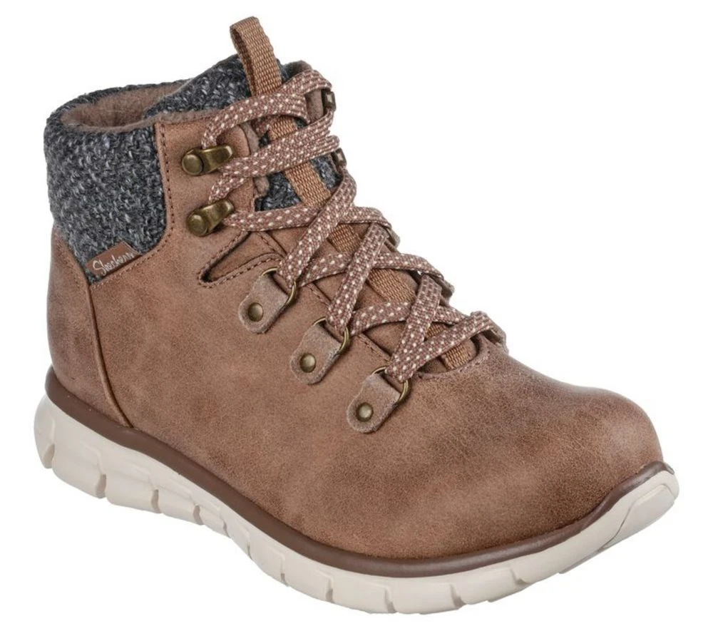 Get ready for winter with these Skechers boots. A lace-up hiker style that features a water-repellent microleather fabric upper. A sweater kit trim and faux-fur lining make these boots super cozy and comfortable. Warm Tech Memory Foam insole and slip-resistane outsole perfect for the snow.