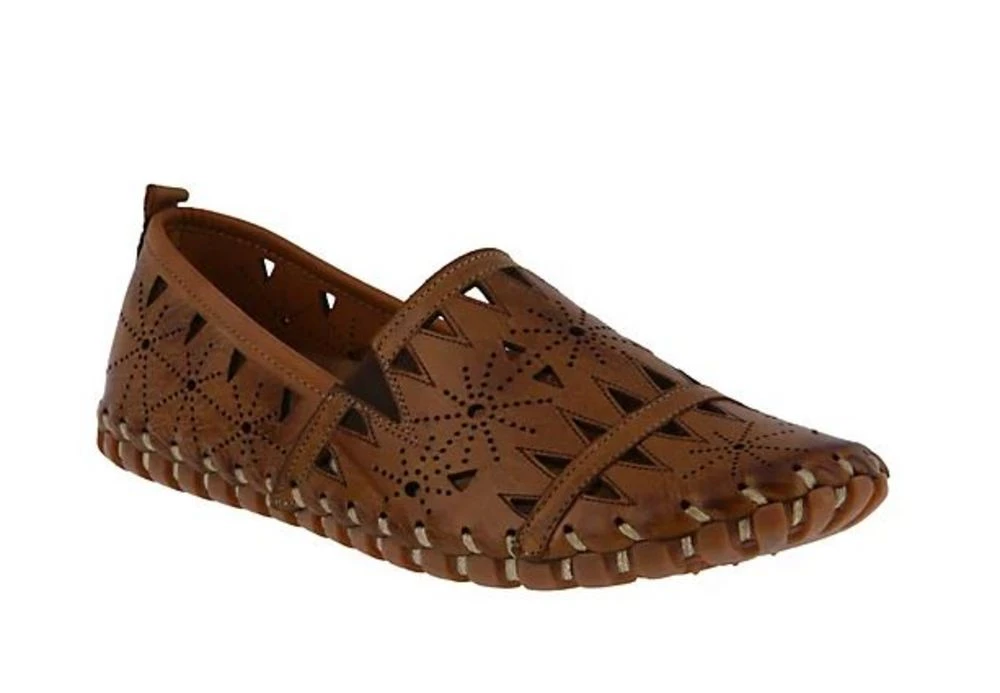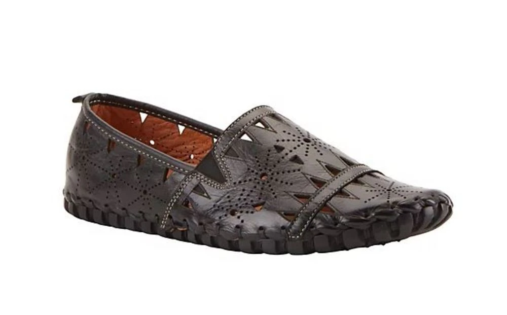 This slip on loafer if the perfect running errands shoe. Geometric cutouts give these shoes an artsy look, while still looking stylish. Features a high quality leather upper, round toe and artisan stitched construction.