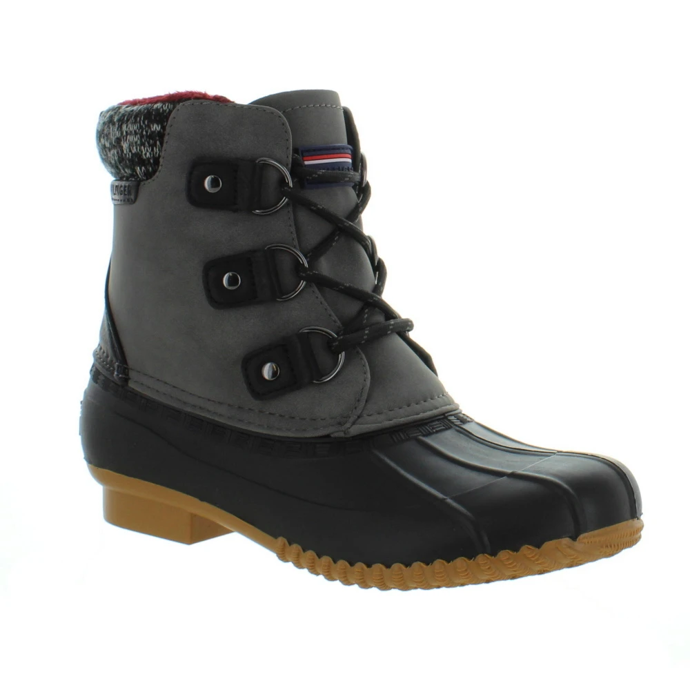 Women`s Tommy Hilfiger Roza3 duck boots. A cute duck boot style with cozy fabric linings. Durable traction outsole for wear in wet conditions. 1-in. heel; 4-in. shaft height; 10-in. calf circumference. Lace-up closure. Round toe.